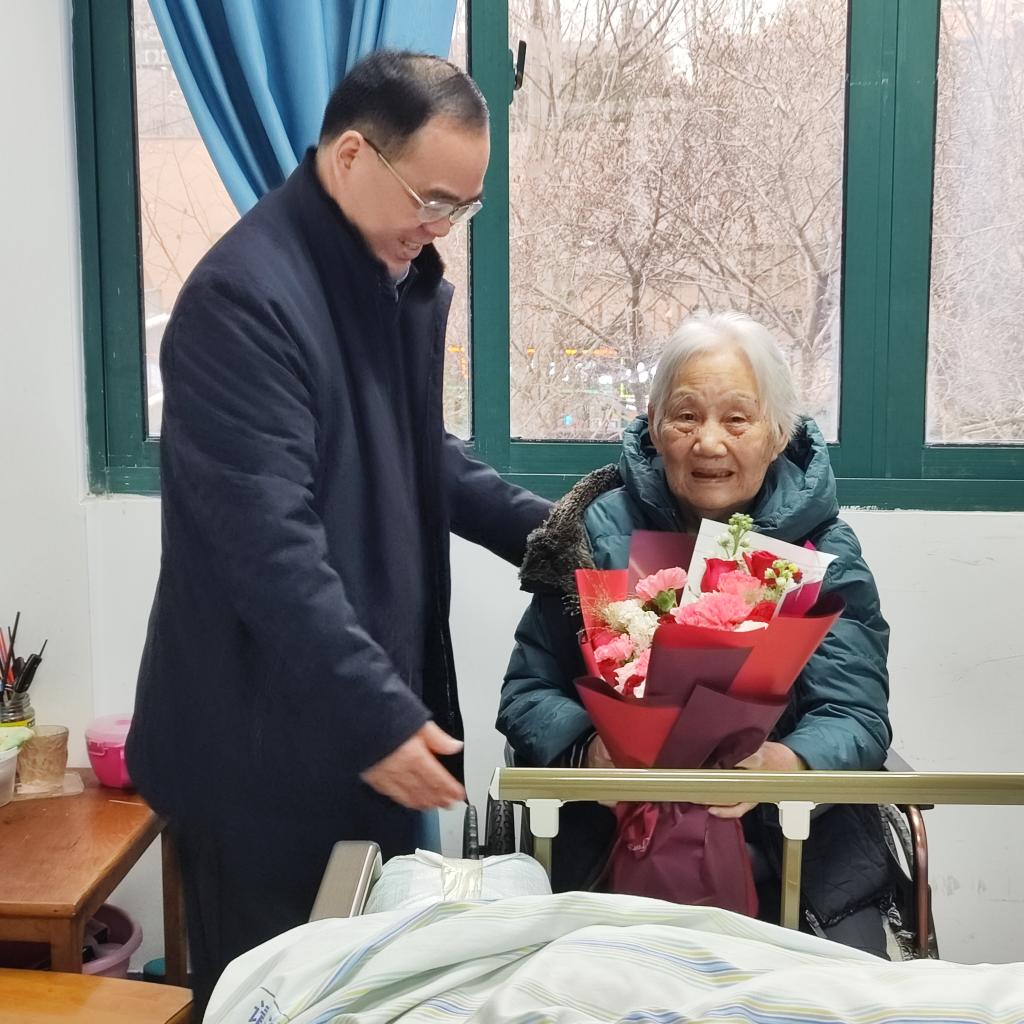 “给您拜个早年!祝您新春愉快、健康长寿!”2月9日上午,党委书记向家文在离退休工作处处长林望春、副处长唐明慧的陪同下,专程前往看望离休干部王芝琴,与她亲切交流,详细询问身体恢复情况与日常照料细节,反复叮嘱护理人员和工作人员,要时刻关注老同志的身体状况与实际需求,用心用情做好照料服务,及时帮助解决生活中遇到的困难与问题。