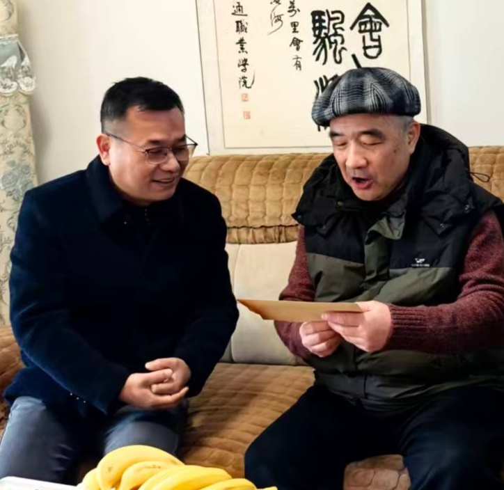 校长周慎走访慰问了退休校领导杨震,送上慰问品与新春祝福。校领导和老同志在一起拉家常、问冷暖、叙情谊,悉心了解他们的退休生活与健康状况,悉心倾听心声诉求。同时向老同志们全面通报了过去一年学校在双高建设、技能人才培养、产教融合等重点工作中取得的突破性进展,认真听取老同志们对学校改革发展的意见建议。